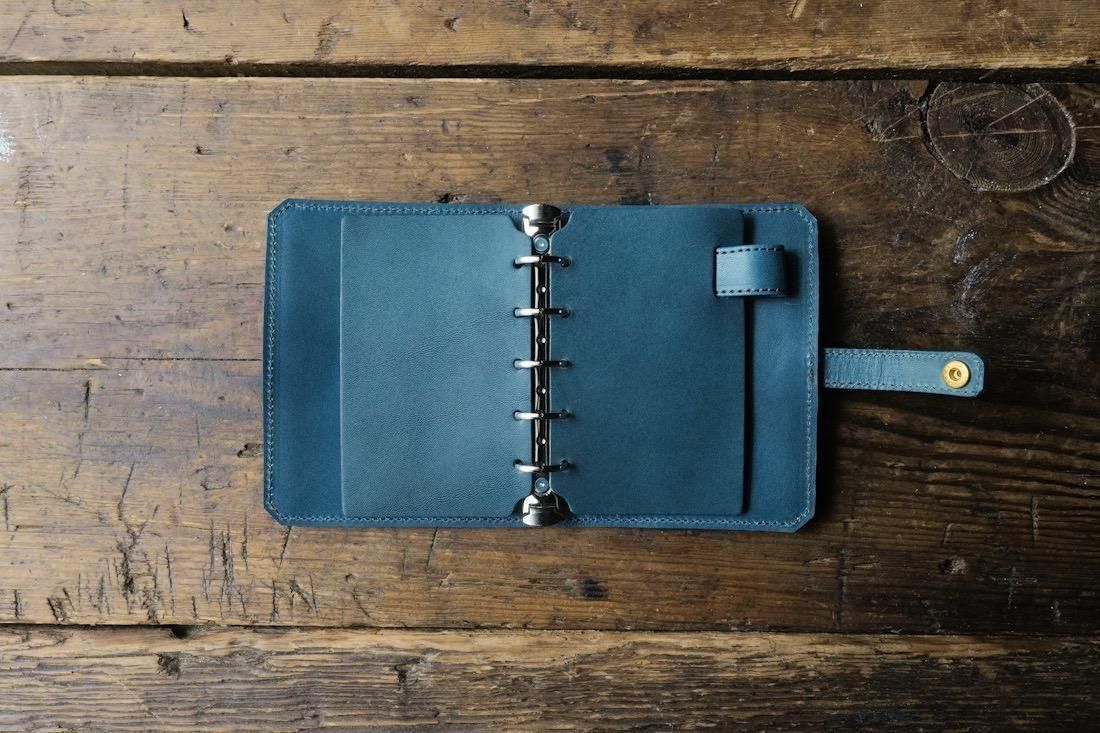 ペンホルダーは裏側から革を引っ張れる仕様のため、収納するペンの太さに合わせて調節が可能です。 太さにとらわれることなくいつも使い慣れたペンを入れておくことができます。
